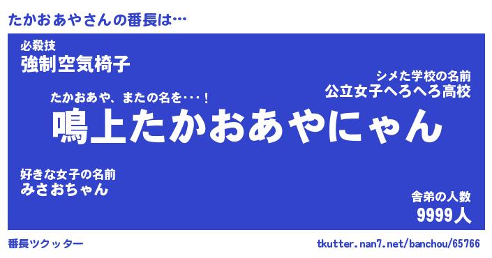 | ファンタジー風あだ名 | 『タカフェル』『エターナルタカオアヤー』 |