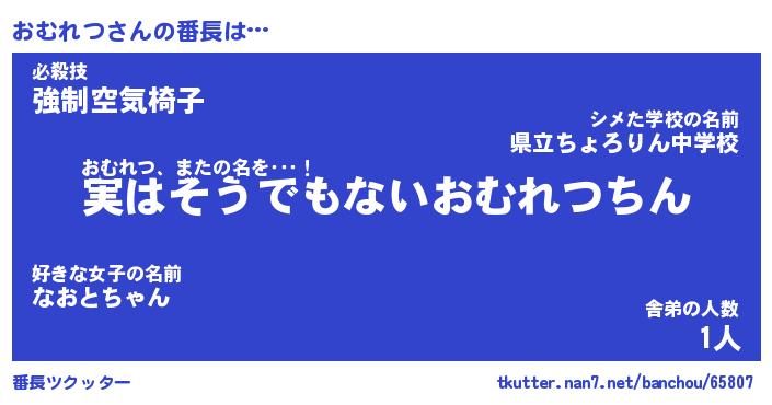 | 2回繰り返すあだ名 | 『おむおむ』『おおむむ』『いらいら』 |