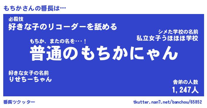| ヒーロー風カッコイイあだ名 | 『スーパーモチカ』『ウルトラもちかマン』 |