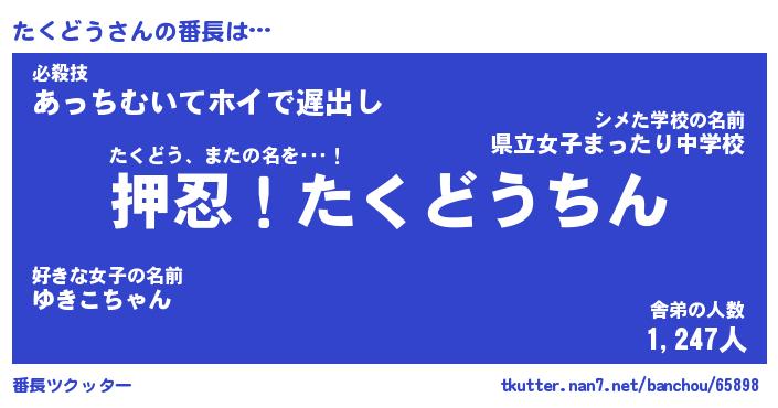 | 意味不明あだ名 | 『ペロリンたくどう』『永久保存たくどう』 |