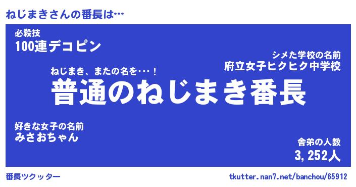 | 欧米人風あだ名 | 『マイケルねじまき』『ウサインねじまき』 |