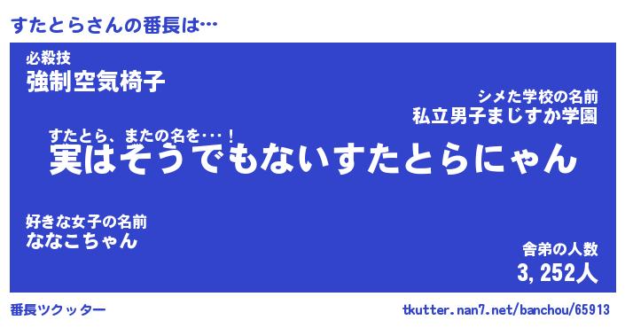 | 肩書あだ名 | 『すたとら店長』『すたとら大統領』 |