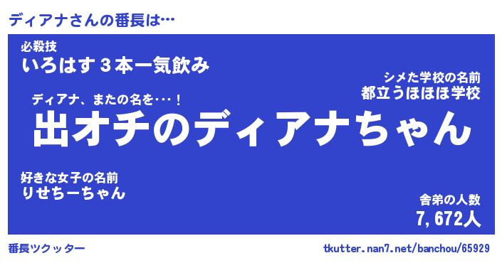 | 肩書あだ名 | 『ディアナ社長』『ディアナ総理大臣』 |