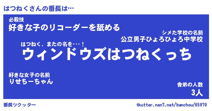 | ファンタジー風あだ名 | 『ハツフェル』『エターナルハツネクー』 |