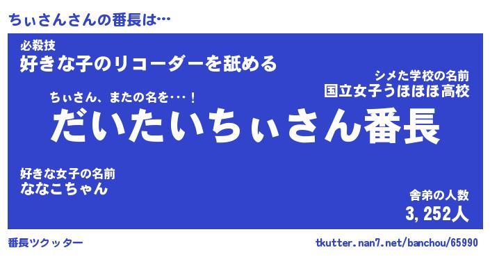 | 2回繰り返すあだ名 | 『ちぃちぃ』『ちちぃぃ』『ぬぷぬぷ』 |