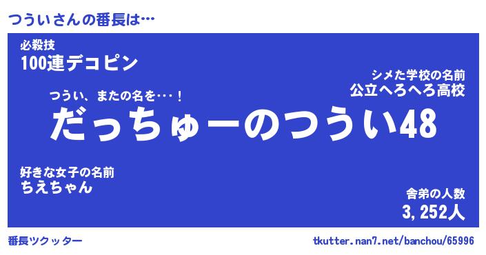 | 意味不明あだ名 | 『ペロリンつうい』『つういフォーエバー』 |