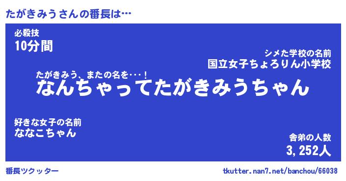 | ヒーロー風カッコイイあだ名 | 『スーパータガキミウ』『幻影騎士タガ』 |