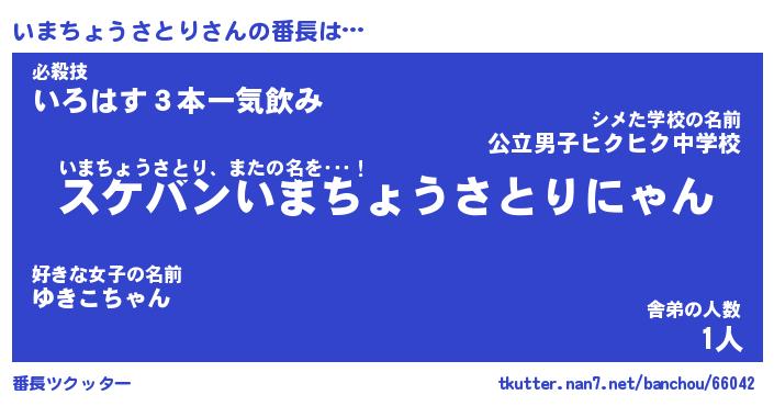 | ポケモン風あだ名 | 『イマチュウ』『イマチダネ』 |