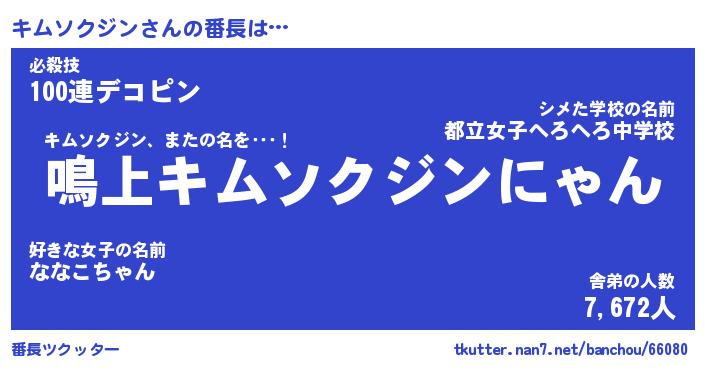 | ピコ太郎風あだ名 | 『キコ史郎』『ピキ六郎』『キム五郎』 |