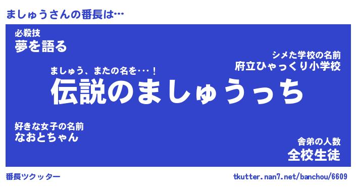 | 肩書あだ名 | 『ましゅう御曹司』『ましゅう大統領』 |