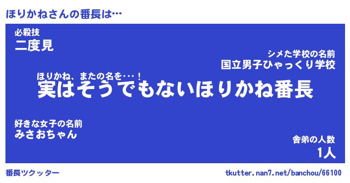 | 2回繰り返すあだ名 | 『ほりほり』『ほほりり』『あんあん』 |
