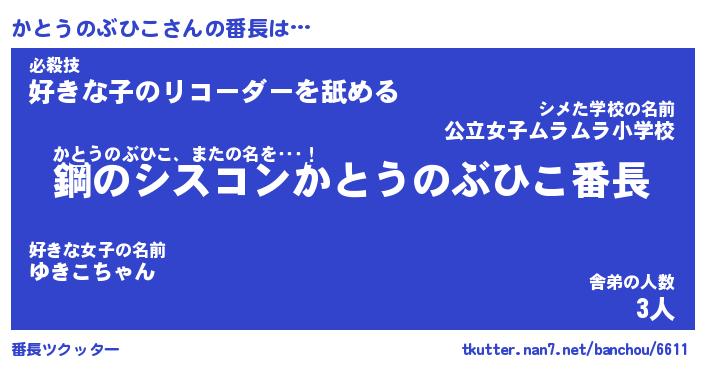 | 肩書あだ名 | 『かとうのぶひこ御曹司』 |