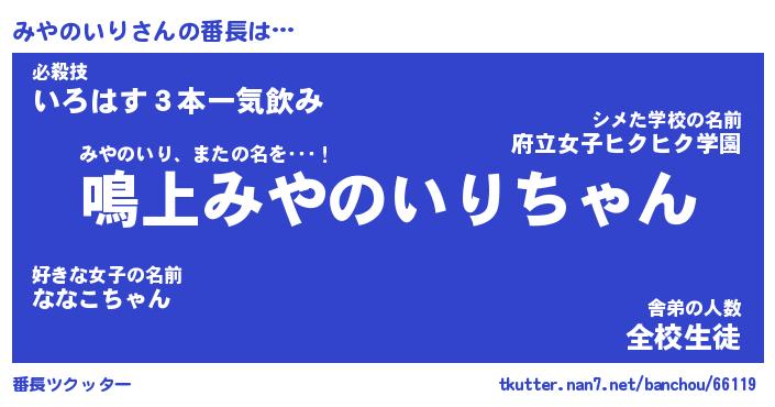 | ヘコむあだ名 | 『みやにー』『なまこ酢』『みやっぺ』 |