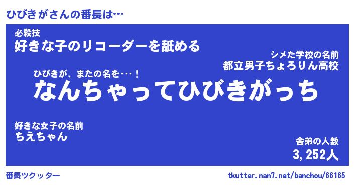| ヘコむあだ名 | 『ひびにー』『なまこ酢』『ひびお』 |