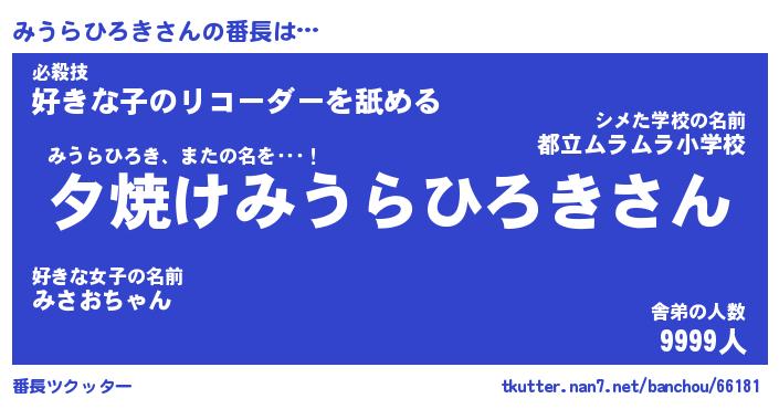 | 伝説のあだ名 | 『封印されしスナイパーみうらひろき』 |