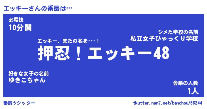 | 意味不明あだ名 | 『ペロリンエッキー』『永久保存エッキー』 |