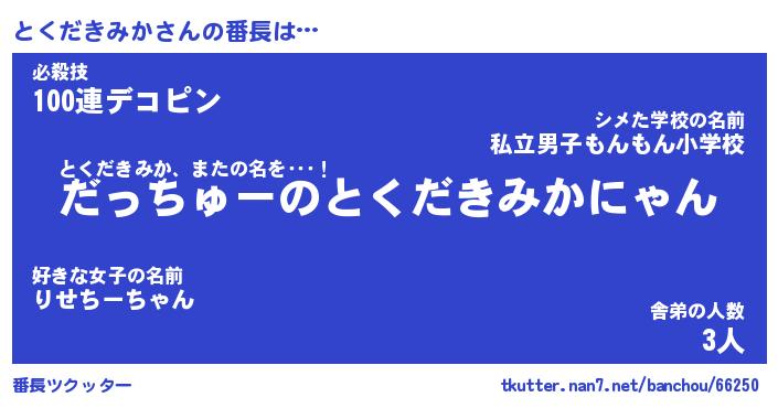 | 伝説のあだ名 | 『伝説のスナイパーとくだきみか』 |