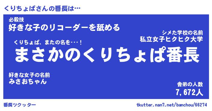 | ヒーロー風カッコイイあだ名 | 『スーパークリチョパ』『炎刃騎士クリ』 |