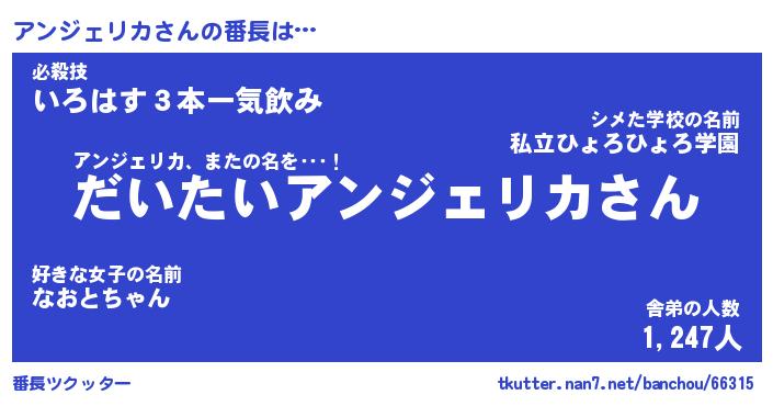 | 肩書あだ名 | 『アンジェリカ店長』『アンジェリカ団長』 |