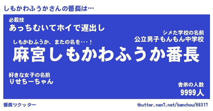 | ヒーロー風カッコイイあだ名 | 『スーパーシモカワフウカ』 |
