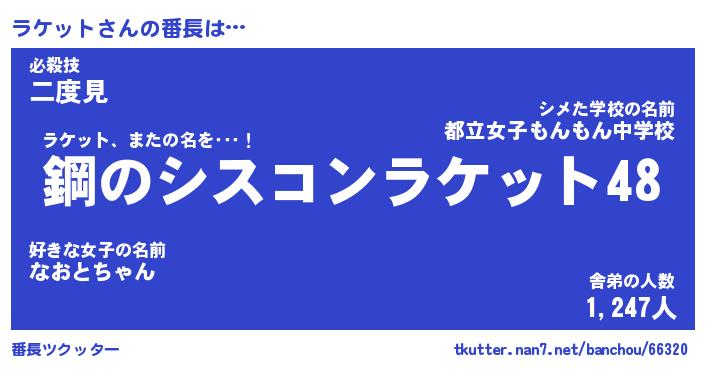 | ヘコむあだ名 | 『ラケにー』『なまこ酢』『ラケっ子』 |