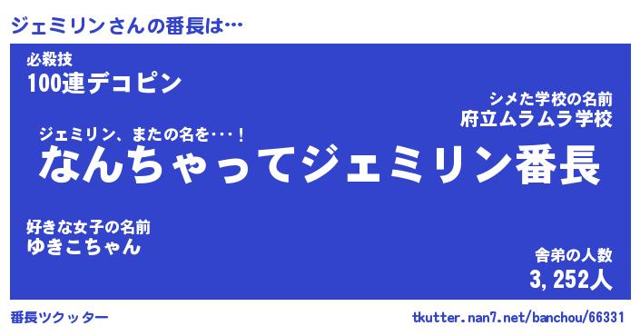 | ファンタジー風あだ名 | 『ジェフェル』『エターナルジェミリンー』 |