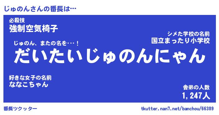 | 欧米人風あだ名 | 『マイケルじゅのん』『ウサインじゅのん』 |