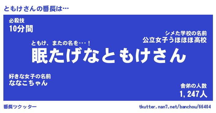 | 伝説のあだ名 | 『封印されしスナイパーともけ』 |