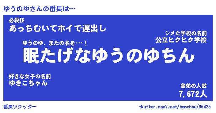 | 意味不明あだ名 | 『ペロリンゆうのゆ』『永久保存ゆうのゆ』 |