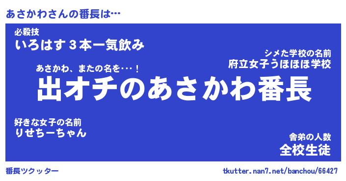 | 意味不明あだ名 | 『ペロリンあさかわ』『永久保存あさかわ』 |