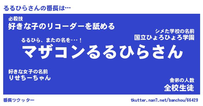 | ヘコむあだ名 | 『るるもー』『なまこ酢』『るるっ子』 |