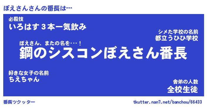 | ヒーロー風カッコイイあだ名 | 『スーパーボエサン』『暗黒騎士ボエ』 |