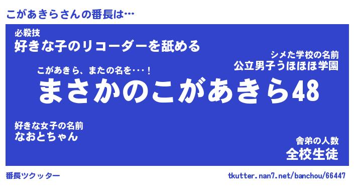 | 男性向けラノベタイトル風あだ名 | 『こがあきらの憂鬱』 |