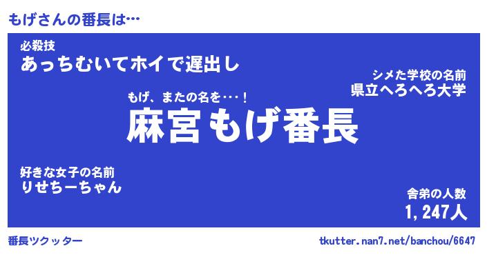 | 意味不明あだ名 | 『ペロリンもげ』『もげフォーエバー』 |