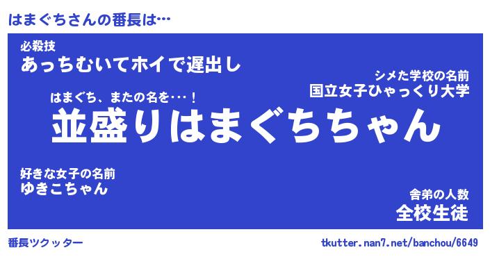 | ポケモン風あだ名 | 『ハマチュウ』『ハマグダネ』 |