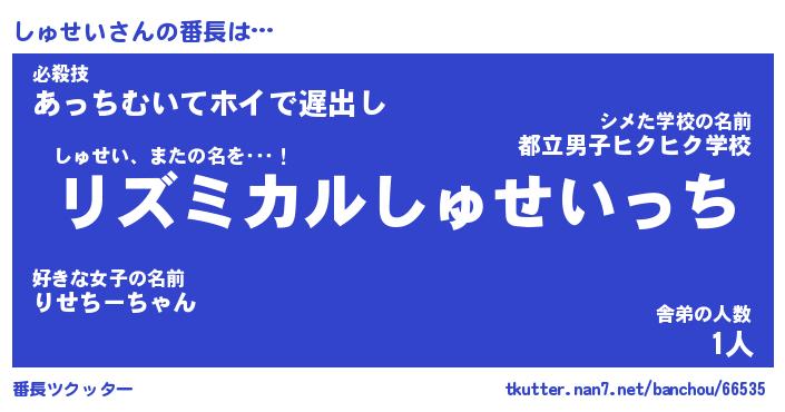 | 意味不明あだ名 | 『ペロリンしゅせい』『永久保存しゅせい』 |