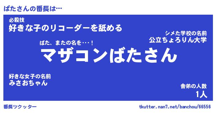 | 意味不明あだ名 | 『ペロリンばた』『ばたフォーエバー』 |