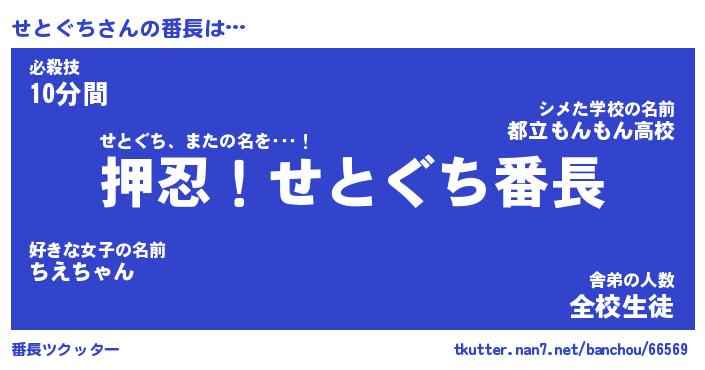 | 意味不明あだ名 | 『ペロリンせとぐち』『永久保存せとぐち』 |