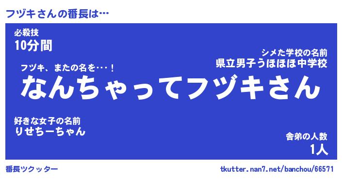 | ピコ太郎風あだ名 | 『フコ一郎』『ピフ一郎』『フヅ六郎』 |