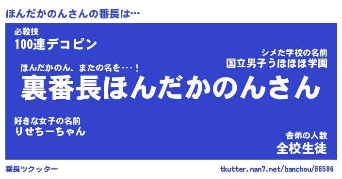 | ヘコむあだ名 | 『ほんにー』『牛乳』『ほん太郎』 |