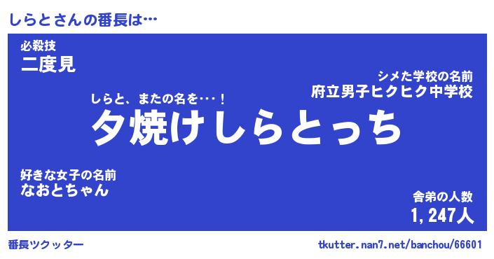 | 伝説のあだ名 | 『封印されしスナイパーしらと』 |