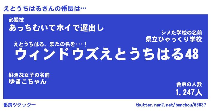 | ヒーロー風カッコイイあだ名 | 『スーパーエトウチハル』『天弓騎士エト』 |