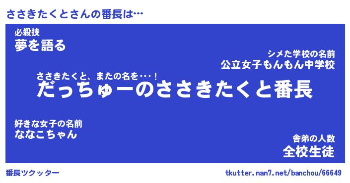 | ポケモン風あだ名 | 『ササチュウ』『ササキダネ』 |