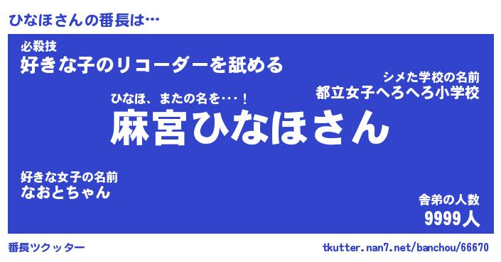 | ヘコむあだ名 | 『ひなふぇ~』『酢こんぶ』 |