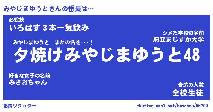 | ヒーロー風カッコイイあだ名 | 『スーパーミヤジマユウト』 |
