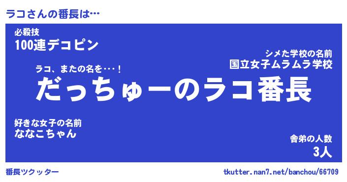 | ヘコむあだ名 | 『ラコふぇ~』『つくし』『ラコを』 |