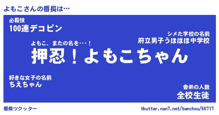| ヒーロー風カッコイイあだ名 | 『スーパーヨモコ』『ウルトラよもこマン』 |