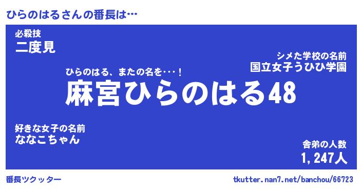 | ヒーロー風カッコイイあだ名 | 『スーパーヒラノハル』『天弓騎士ヒラ』 |