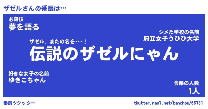 | ファンタジー風あだ名 | 『ザゼフェル』『エターナルザゼルー』 |