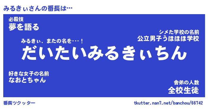 | ヘコむあだ名 | 『みるにゅー』『豆乳』『みるっ子』 |